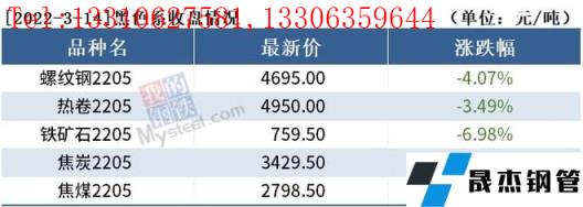 截至3月14日收盤,螺紋鋼2205收4695元/噸,跌4.07%;熱卷2205收4950元/噸,跌3.49%;鐵礦石2205收759.5元/噸,跌6.98%。