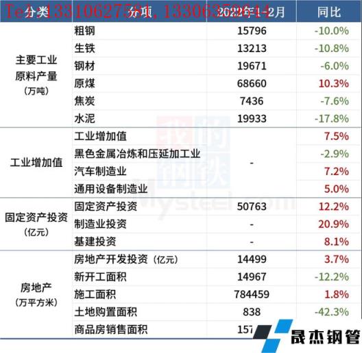 1至2月份,全國規模以上工業增加值同比增長7.5%,比2021年12月份加快3.2個百分點,比2021年兩年平均增速加快1.4個百分點。其中,黑色金屬冶煉和壓延加工業同比下降2.9%,自2020年1-2月以來首次轉負,并創2017年1-2月以來新低。