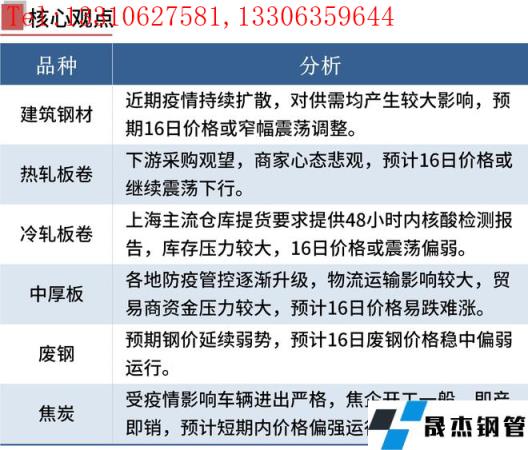 近期,全國疫情呈現局部高度聚集和多點散發態勢,多個城市實現封閉管理,建設工地、物流運輸受到影響,鋼市成交量明顯下降。雖然部分地區無縫厚壁鋼管廠家生產也受到影響,但建筑工地受到的沖擊更大,預期鋼市供需壓力加大,短期鋼價或震蕩偏弱。