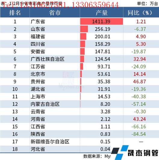 免責聲明:本網站(山東聊城晟杰無縫鋼管廠m.gdqiayu.com)刊載的“統計局:1-2月四大家電分省市產量出爐,廣東彩電空調排第一”等均源于網絡,版權歸原作者所有,且僅代表原作者觀點,本文所載信息僅供參考。轉載僅為學習與交流之目的,如無意中侵犯您的合法權益,請及時聯系刪除。本網站刊登此篇文章并不意味著本站贊同其觀點或證實其內容的真實性,我們不對其科學性、嚴肅性等作任何形式的保證。如果侵犯了您的版權,請盡快聯系我們予以撤銷,謝謝合作!