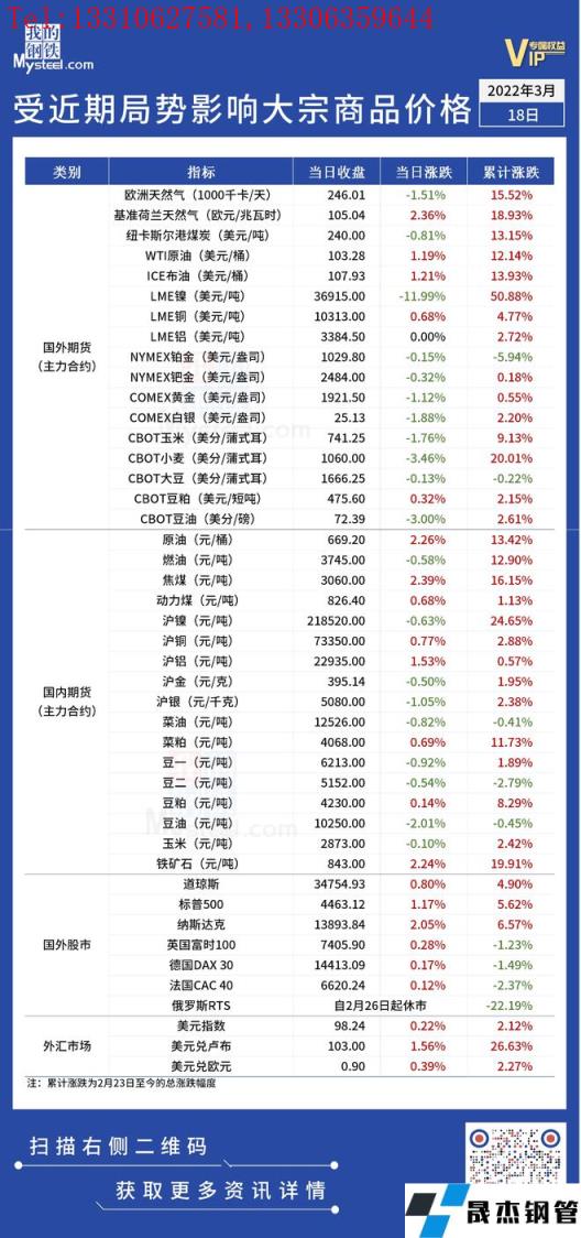 免責聲明:本網站(山東聊城晟杰無縫鋼管廠m.gdqiayu.com)刊載的“受近期局勢影響大宗商品價格一覽表(3月18日)”等均源于網絡,版權歸原作者所有,且僅代表原作者觀點,本文所載信息僅供參考。轉載僅為學習與交流之目的,如無意中侵犯您的合法權益,請及時聯系刪除。本網站刊登此篇文章并不意味著本站贊同其觀點或證實其內容的真實性,我們不對其科學性、嚴肅性等作任何形式的保證。如果侵犯了您的版權,請盡快聯系我們予以撤銷,謝謝合作!