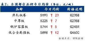 今日全國部分品種均價上漲,整體漲幅為5~23元/噸。