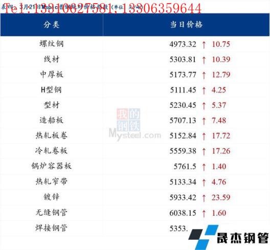3月21日普鋼絕對價格指數變化:綜合指數5221.43,上漲12.38;螺紋鋼指數4973.32,上漲10.75;線材指數5303.81,上漲10.39;熱軋板卷指數5152.84,上漲17.72;冷軋板卷指數5559.38,上漲17.26;中厚板指數5173.77,上漲12.79。