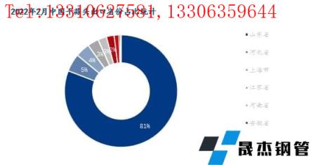 2022年2月中國干大蒜主要出口省份為山東省、河北省及上海市。其中山東省本月出口量為1.18萬噸,環比減少17.59萬噸,降幅為93.71%,占比81%。河北省本月出口量為0.07萬噸,環比減少1.12萬噸,降幅為94.12%,占比5%。上海市本月出口量為0.06萬噸,環比減少1.26萬噸,降幅為95.45%。綜合來看,干大蒜本月各省份出口份額大幅減少。