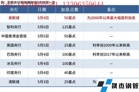 據不完全統計,截至發稿,5月已有6家央行跟隨美聯儲腳步加息,1家央行先于美聯儲一天加息。具體如下: