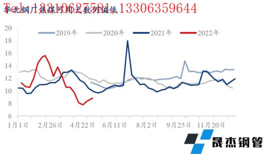 但需求注意目前下游用戶庫存仍較低,疫情反復阻礙了下游焦鋼企業到貨,山西到河北的運費最高時漲至430元/噸的運價,直至近日物流明顯好轉,運費才逐步恢復正常,但華北、華東無縫厚壁鋼管廠家及焦企的焦煤庫存仍然很低。