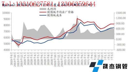 綜合來看,目前整體毛利尚能維持,凈利潤并不算高。從當前馬口鐵基價整體不算低,下游制罐行業仍難以接受當前馬口鐵成本,無縫厚壁鋼管廠家整體挺價意愿偏弱,基板、錫錠等成本仍震蕩偏強。因此,筆者預計5月份馬口鐵毛利或有進一步下滑。