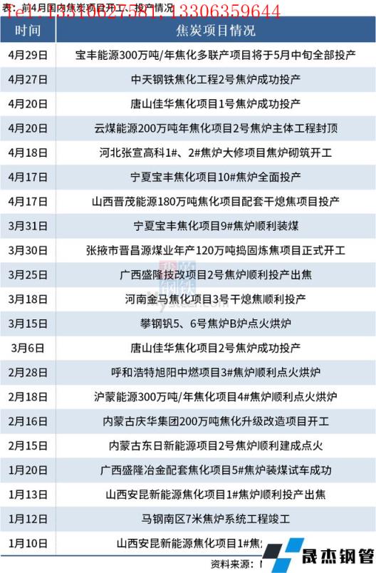 免責聲明:本網站(山東聊城晟杰無縫鋼管廠m.gdqiayu.com)刊載的“4月國內21個焦炭項目開工、投產”等均源于網絡,版權歸原作者所有,且僅代表原作者觀點,本文所載信息僅供參考。轉載僅為學習與交流之目的,如無意中侵犯您的合法權益,請及時聯系刪除。本網站刊登此篇文章并不意味著本站贊同其觀點或證實其內容的真實性,我們不對其科學性、嚴肅性等作任何形式的保證。如果侵犯了您的版權,請盡快聯系我們予以撤銷,謝謝合作!
