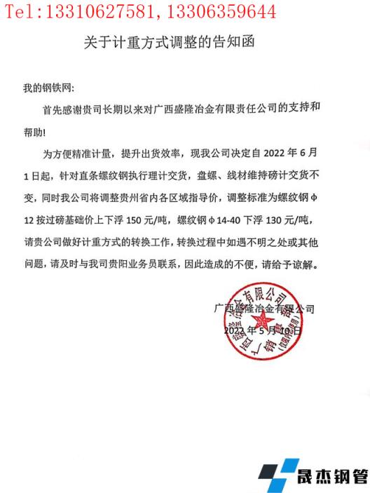免責聲明:本網站(山東聊城晟杰無縫鋼管廠m.gdqiayu.com)刊載的“廣西盛隆冶金有限公司關于對貴州區域計重方式調整的告知函”等均源于網絡,版權歸原作者所有,且僅代表原作者觀點,本文所載信息僅供參考。轉載僅為學習與交流之目的,如無意中侵犯您的合法權益,請及時聯系刪除。本網站刊登此篇文章并不意味著本站贊同其觀點或證實其內容的真實性,我們不對其科學性、嚴肅性等作任何形式的保證。如果侵犯了您的版權,請盡快聯系我們予以撤銷,謝謝合作!