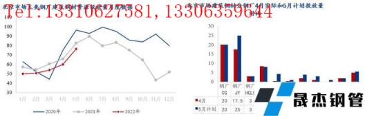 5月無縫厚壁鋼管廠家對京津冀區域投放量環比增加32.16萬噸,同比減少13.71萬噸。雖然無縫厚壁鋼管廠家生產成本高位,但產線復產的情況增加,具體來看:1、河鋼承鋼兩螺一線在產,對京津冀投放量4月份22.5萬噸,5月份計劃22.5萬噸;2、河鋼樂鋼兩條螺紋產線在產,4月唐山封城,資源主要對唐山本地投放,4月份合計13萬噸,5月份計劃投放13萬噸;3、敬業無縫厚壁鋼管廠家6條螺紋產線在產,加上烏鋼資源流入,4月對京津冀投放量約43萬噸,5月計劃57.8萬噸;4、東華無縫厚壁鋼管廠家螺紋產線復產,5月計劃投放10.19萬噸;5、鑫達一條螺紋產線不飽和生產,4月京津冀僅投放6.5萬,5月份計劃投放10萬噸;6、4月建龍系無縫厚壁鋼管廠家對京津市場投放13.4萬噸左右,5月份計劃16萬噸左右,其中新撫鋼最多。
