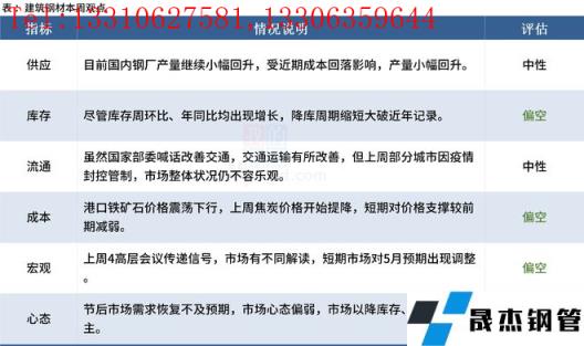 總體來看,市場受到了多重因素擾動,預期出現調整。此外,各地疫情反復發生對市場需求產生持續性影響,致使各地停工和復工交替發生,需求表現較差,市場缺少有效支撐。本周,市場博弈加強,在新的利好消息或者供需調整完成前,鋼價將延續承壓下行趨勢。