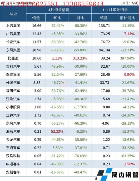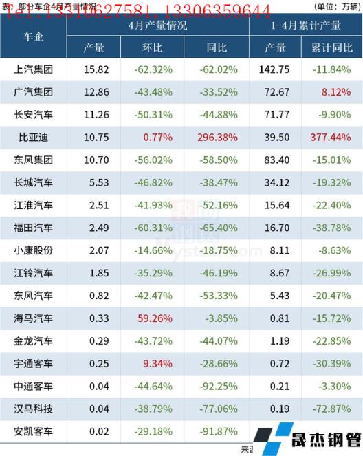 免責聲明:本網站(山東聊城晟杰無縫鋼管廠m.gdqiayu.com)刊載的“4月19家車企銷量出爐,超九成同比大降”等均源于網絡,版權歸原作者所有,且僅代表原作者觀點,本文所載信息僅供參考。轉載僅為學習與交流之目的,如無意中侵犯您的合法權益,請及時聯系刪除。本網站刊登此篇文章并不意味著本站贊同其觀點或證實其內容的真實性,我們不對其科學性、嚴肅性等作任何形式的保證。如果侵犯了您的版權,請盡快聯系我們予以撤銷,謝謝合作!