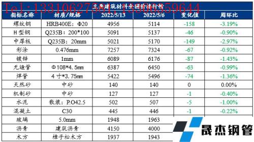 免責聲明:本網站(山東聊城晟杰無縫鋼管廠m.gdqiayu.com)刊載的“建筑原材料周報(5.9-5.13)”等均源于網絡,版權歸原作者所有,且僅代表原作者觀點,本文所載信息僅供參考。轉載僅為學習與交流之目的,如無意中侵犯您的合法權益,請及時聯系刪除。本網站刊登此篇文章并不意味著本站贊同其觀點或證實其內容的真實性,我們不對其科學性、嚴肅性等作任何形式的保證。如果侵犯了您的版權,請盡快聯系我們予以撤銷,謝謝合作!