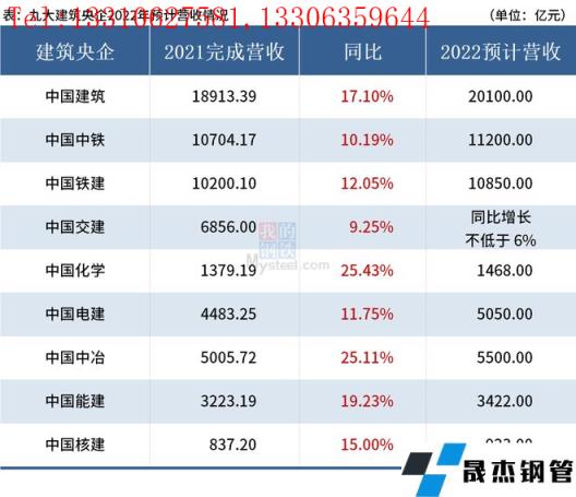 免責聲明:本網站(山東聊城晟杰無縫鋼管廠m.gdqiayu.com)刊載的“九大建筑央企2022年計劃新簽合同額破14萬億”等均源于網絡,版權歸原作者所有,且僅代表原作者觀點,本文所載信息僅供參考。轉載僅為學習與交流之目的,如無意中侵犯您的合法權益,請及時聯系刪除。本網站刊登此篇文章并不意味著本站贊同其觀點或證實其內容的真實性,我們不對其科學性、嚴肅性等作任何形式的保證。如果侵犯了您的版權,請盡快聯系我們予以撤銷,謝謝合作!