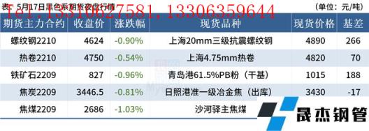免責聲明:本網站(山東聊城晟杰無縫鋼管廠m.gdqiayu.com)刊載的“2022年05月18日早讀:黑色期貨夜盤普跌,焦炭開啟第三輪提降”等均源于網絡,版權歸原作者所有,且僅代表原作者觀點,本文所載信息僅供參考。轉載僅為學習與交流之目的,如無意中侵犯您的合法權益,請及時聯系刪除。本網站刊登此篇文章并不意味著本站贊同其觀點或證實其內容的真實性,我們不對其科學性、嚴肅性等作任何形式的保證。如果侵犯了您的版權,請盡快聯系我們予以撤銷,謝謝合作!