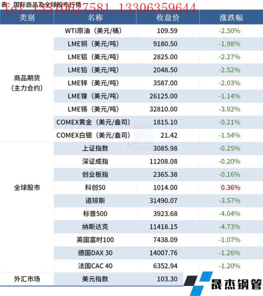 免責聲明:本網站(山東聊城晟杰無縫鋼管廠m.gdqiayu.com)刊載的“2022年05月19日早讀:無縫鋼管廠家虧損面積擴大,全球大宗商品價格重挫”等均源于網絡,版權歸原作者所有,且僅代表原作者觀點,本文所載信息僅供參考。轉載僅為學習與交流之目的,如無意中侵犯您的合法權益,請及時聯系刪除。本網站刊登此篇文章并不意味著本站贊同其觀點或證實其內容的真實性,我們不對其科學性、嚴肅性等作任何形式的保證。如果侵犯了您的版權,請盡快聯系我們予以撤銷,謝謝合作!