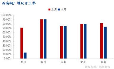貴州區域:因虧損加重,多數無縫厚壁鋼管廠家停產,產量明顯下降,螺紋鋼產能利用率26.8%,環比下降40.2%;開工率14.29%,環比下降57.14%;周產量3.2萬噸,環比下降4.8萬噸。