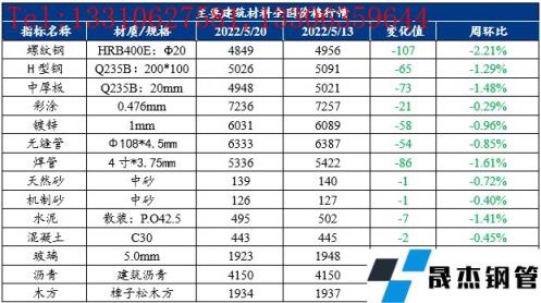 免責聲明:本網站(山東聊城晟杰無縫鋼管廠m.gdqiayu.com)刊載的“建筑原材料周報(5.16-5.20)”等均源于網絡,版權歸原作者所有,且僅代表原作者觀點,本文所載信息僅供參考。轉載僅為學習與交流之目的,如無意中侵犯您的合法權益,請及時聯系刪除。本網站刊登此篇文章并不意味著本站贊同其觀點或證實其內容的真實性,我們不對其科學性、嚴肅性等作任何形式的保證。如果侵犯了您的版權,請盡快聯系我們予以撤銷,謝謝合作!