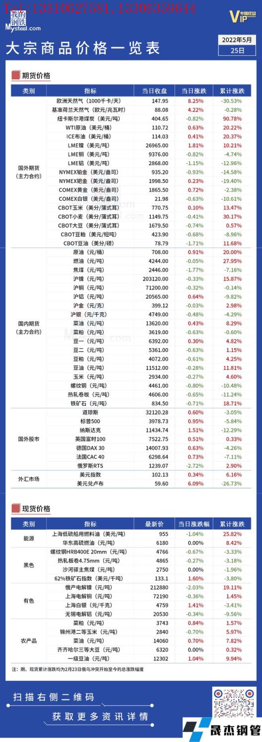 免責聲明:本網站(山東聊城晟杰無縫鋼管廠m.gdqiayu.com)刊載的“俄烏局勢丨大宗商品價格一覽表(5月25日)”等均源于網絡,版權歸原作者所有,且僅代表原作者觀點,本文所載信息僅供參考。轉載僅為學習與交流之目的,如無意中侵犯您的合法權益,請及時聯系刪除。本網站刊登此篇文章并不意味著本站贊同其觀點或證實其內容的真實性,我們不對其科學性、嚴肅性等作任何形式的保證。如果侵犯了您的版權,請盡快聯系我們予以撤銷,謝謝合作!