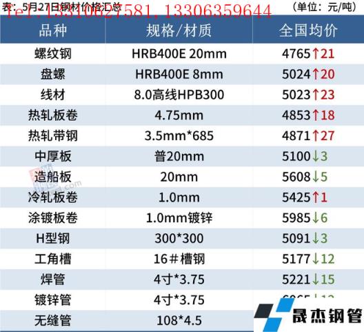 建筑厚壁無縫鋼管:5月27日,全國31個主要城市20mm三級抗震螺紋鋼均價4765元/噸,較上個交易日漲21元/噸。短期來看,受期螺大幅上漲,市場悲觀情緒有所修復,出貨有所好轉。短期投資消費信心不足導致市場供需處于雙弱的格局,當前市場整體消費恢復情況仍需觀察。因此預計下周國內建筑厚壁無縫鋼管價格或將繼續小幅上漲為主。
