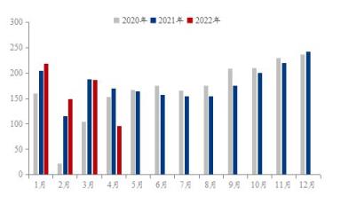 需求端方面,汽車用鋼作為冷軋需求的重要組成部分,產銷數據一定程度上能反映出市場的需求情況。4月份,乘用車產銷量分別完成99.6萬輛和96.5萬輛,環比、同比均是呈下降態勢,同比下降幅度分別為41.9%和43.4%。4月汽車產銷呈現明顯下降。當前月銷量在96.5萬輛,為近十年以來同期月度新低。相比而言新能源汽車雖然也受到一定影響,但依然高于上年同期水平,總體表現較好。受國際形勢影響,芯片短缺問題持續存在,原材料成本上漲等因素對于企業生產經營也造成一定的影響,這也是汽車行業當前所面臨的困境。但從當前乘用車的發展趨勢來看,隨著一系列幅度更大的減稅降費、助企解困等利好政策不斷落地,加之二季度以來,各地大規?;üこ剃懤m開工,對于經濟增長均會起到明顯的推動作用。因此,預計在三季度汽車市場有望呈現平穩增長態勢。伴隨著汽車產銷的情況逐步好轉,汽車用鋼量也或將得到提升,因此內需有望在三季度逐漸回暖。
