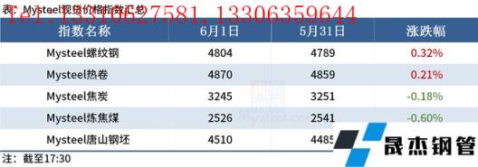 ◎ 中天鋼鐵出臺6月上旬出廠價,螺紋鋼平、線材盤螺平、帶鋼平,螺紋5000、線材盤螺5300、帶鋼5100。