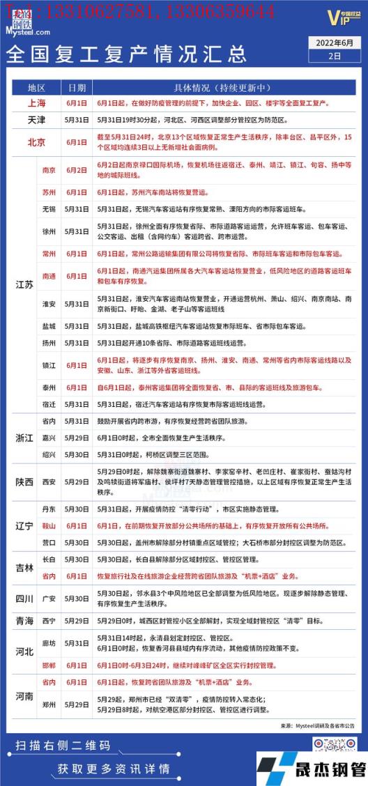免責聲明:本網站(山東聊城晟杰無縫鋼管廠m.gdqiayu.com)刊載的“疫情影響丨全國復工復產情況匯總(6月2日)”等均源于網絡,版權歸原作者所有,且僅代表原作者觀點,本文所載信息僅供參考。轉載僅為學習與交流之目的,如無意中侵犯您的合法權益,請及時聯系刪除。本網站刊登此篇文章并不意味著本站贊同其觀點或證實其內容的真實性,我們不對其科學性、嚴肅性等作任何形式的保證。如果侵犯了您的版權,請盡快聯系我們予以撤銷,謝謝合作!