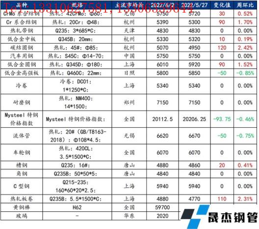 供應方面,上周中厚板產量143.76萬噸,周環比下降0.16萬噸;庫存方面,無縫厚壁鋼管廠家庫存77.27萬噸,周環比減少4.03萬噸,社會庫存116.07萬噸,周環比減少1.29萬噸,總庫存193.34萬噸,周環比減少5.32萬噸。上周期貨震蕩趨強,提振市場,貿易商探漲情緒濃,部分城市上調價格后成交轉差。供應方面,目前中厚板產量居高不下,短期沒有檢修計劃,預計供給壓力仍未減。流通環節來看,物流運輸受到疫情的管控也在逐步放松,南北資源流通有一定的恢復,包括無縫厚壁鋼管廠家廠庫向社庫轉移的進度也在加快。另外上海地區倉庫已于6月1日正式復工,市場運轉即將恢復,需求有望迎來一波復蘇,預計本周中厚板市場價格震蕩偏強運行,還需繼續關注需求復蘇的持續性。