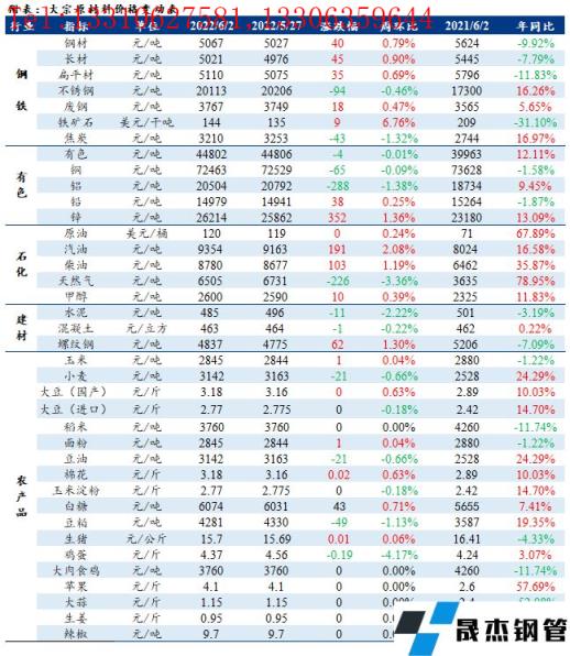 免責聲明:本網站(山東聊城晟杰無縫鋼管廠m.gdqiayu.com)刊載的“周報:大宗工業原材料、能源及農產品價格周報(5.30-6.02)”等均源于網絡,版權歸原作者所有,且僅代表原作者觀點,本文所載信息僅供參考。轉載僅為學習與交流之目的,如無意中侵犯您的合法權益,請及時聯系刪除。本網站刊登此篇文章并不意味著本站贊同其觀點或證實其內容的真實性,我們不對其科學性、嚴肅性等作任何形式的保證。如果侵犯了您的版權,請盡快聯系我們予以撤銷,謝謝合作!