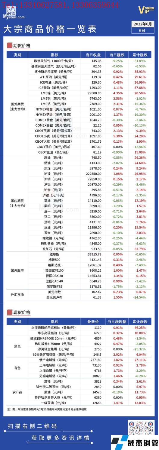免責聲明:本網站(山東聊城晟杰無縫鋼管廠m.gdqiayu.com)刊載的“俄烏局勢丨大宗商品價格一覽表(6月6日)”等均源于網絡,版權歸原作者所有,且僅代表原作者觀點,本文所載信息僅供參考。轉載僅為學習與交流之目的,如無意中侵犯您的合法權益,請及時聯系刪除。本網站刊登此篇文章并不意味著本站贊同其觀點或證實其內容的真實性,我們不對其科學性、嚴肅性等作任何形式的保證。如果侵犯了您的版權,請盡快聯系我們予以撤銷,謝謝合作!