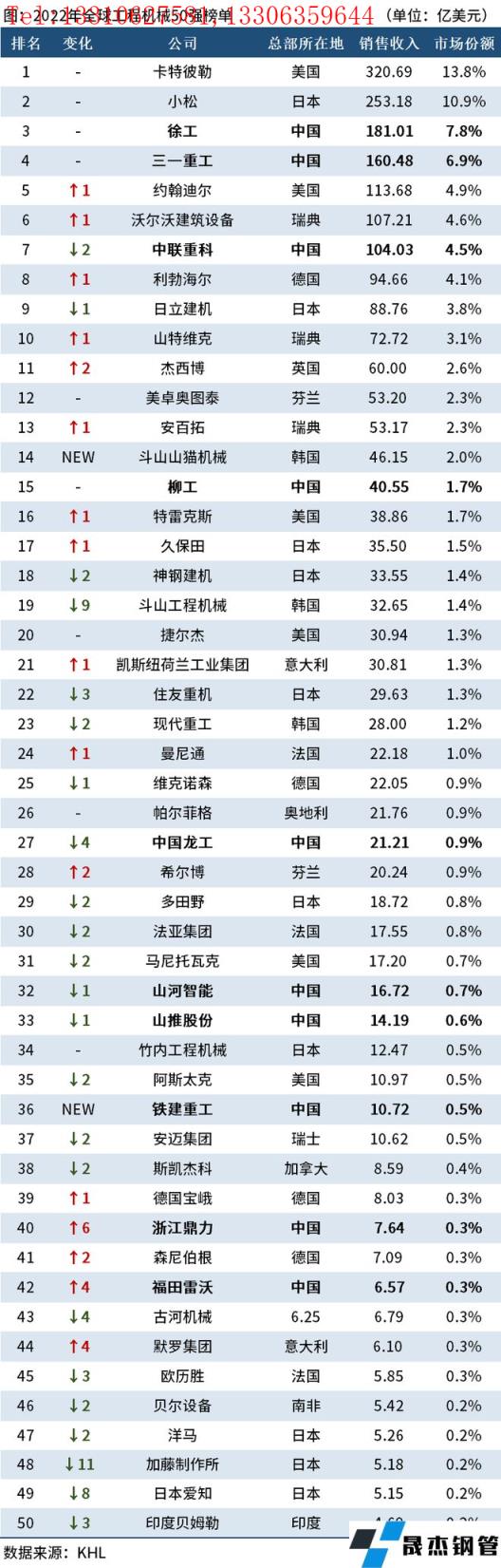 免責聲明:本網站(山東聊城晟杰無縫鋼管廠m.gdqiayu.com)刊載的“2022全球工程機械50強榜單出爐,企業銷售額增超20%”等均源于網絡,版權歸原作者所有,且僅代表原作者觀點,本文所載信息僅供參考。轉載僅為學習與交流之目的,如無意中侵犯您的合法權益,請及時聯系刪除。本網站刊登此篇文章并不意味著本站贊同其觀點或證實其內容的真實性,我們不對其科學性、嚴肅性等作任何形式的保證。如果侵犯了您的版權,請盡快聯系我們予以撤銷,謝謝合作!