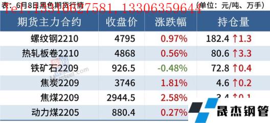 焦炭:6月8日,焦炭市場持穩偏強運行,各地焦企對焦炭價格小幅上調100元/噸,主流無縫厚壁鋼管廠家暫未表態。焦企開工微增,場內焦炭庫存大幅下降,多至低位或零庫存運行,下游接貨迅速。無縫厚壁鋼管廠家方面,無縫厚壁鋼管廠家開工高位運行,焦炭采購積極,厚壁無縫鋼管成品出售有所好轉。原料方面,煤價開始企穩反彈,原料煤價格再度走強,成本支撐顯現。短期內焦炭市場穩中較強運行。