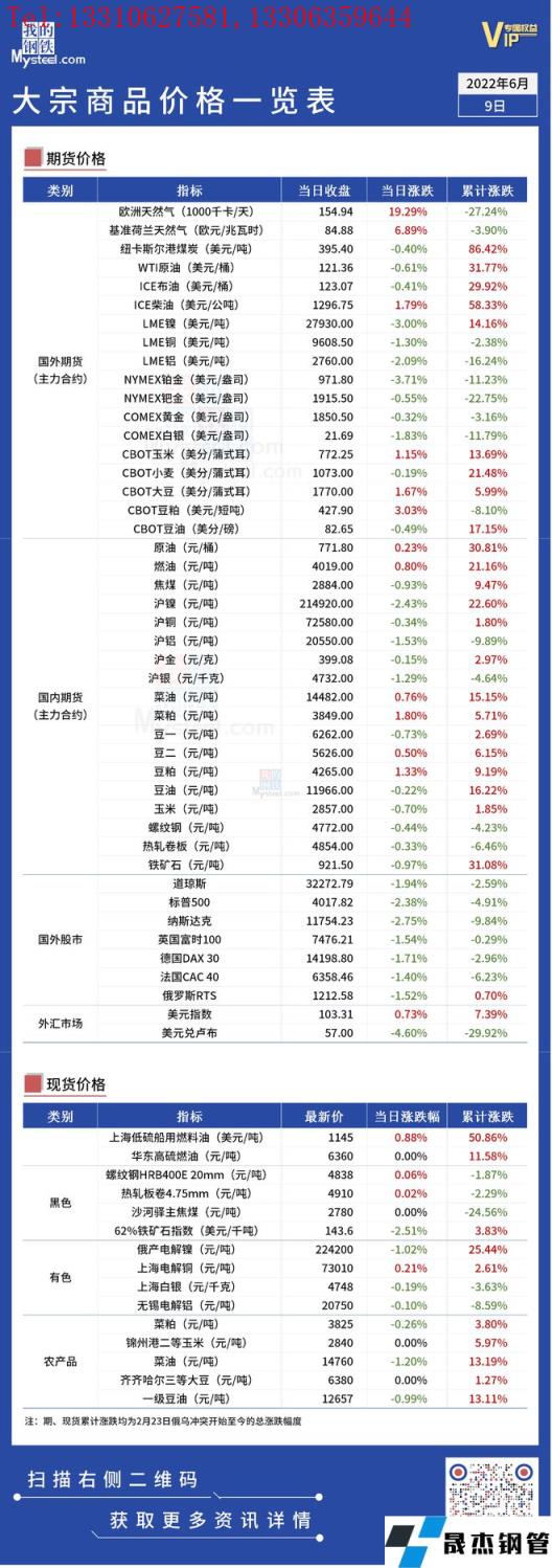 免責聲明:本網站(山東聊城晟杰無縫鋼管廠m.gdqiayu.com)刊載的“俄烏局勢丨大宗商品價格一覽表(6月9日)”等均源于網絡,版權歸原作者所有,且僅代表原作者觀點,本文所載信息僅供參考。轉載僅為學習與交流之目的,如無意中侵犯您的合法權益,請及時聯系刪除。本網站刊登此篇文章并不意味著本站贊同其觀點或證實其內容的真實性,我們不對其科學性、嚴肅性等作任何形式的保證。如果侵犯了您的版權,請盡快聯系我們予以撤銷,謝謝合作!
