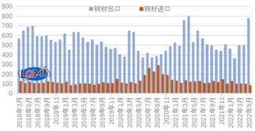 圖1 2018-2022年月度無縫鋼管 厚壁鋼管進出口走勢