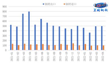 進口方面,由于國內疫情對經濟的沖擊超出預期,無縫鋼管 厚壁鋼管需求較弱,且海外市場價格偏高,進口仍呈下降態勢。4月份,我國進口無縫鋼管 厚壁鋼管95.6萬噸,環比下降5.4%,同比下降18.6%;1-4月累計進口無縫鋼管 厚壁鋼管417.4萬噸,同比下降14.7%。