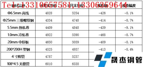分品種來看,云商平臺監測的8大厚壁鋼管品種10大城市均價顯示,6月底,各品種價格相比上月底均明顯下跌,其中,熱軋卷跌幅最大,為9.1%;無縫管跌幅最小,為5.2%;其他品種跌幅在8.1-8.7%之間(詳見表1)。