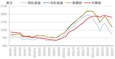 美國經濟衰退風險上升,制造業增速連續回落,加息提高企業和居民的融資成本,扁平材供需或將走弱,8月份北美市場扁平材價格可能保持弱勢調整的態勢。