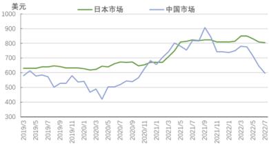 圖5 2019-2022年亞洲扁平材市場價格走勢圖